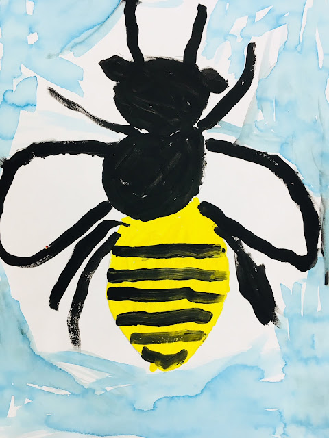 First graders have been learning about honey bees for their STEAM unit. The "A" in STEAM stands for Art! So I ran a couple of bee inspired projects in my art room. This was a great way to observe the bee! Nice job first.